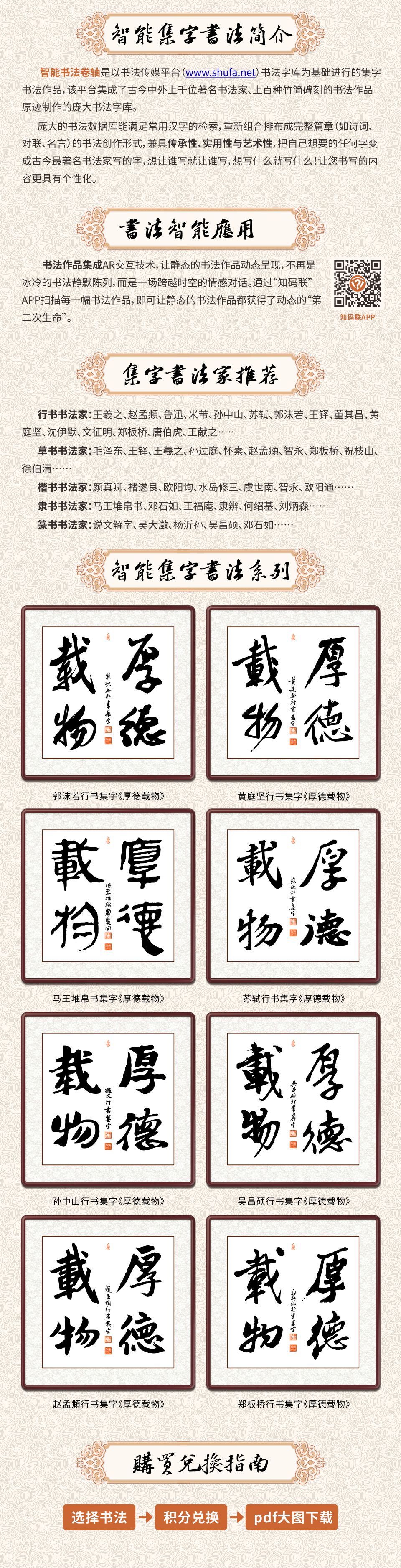 黄庭坚、马王堆帛书、苏轼、孙中山、吴昌硕、赵孟頫、郑板桥、郭沫若书法《厚德载物》