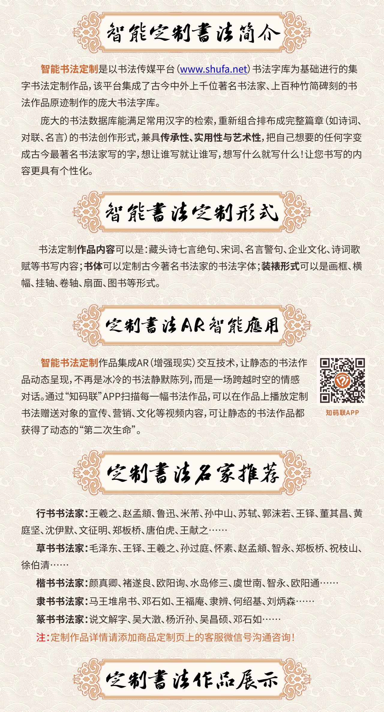 藏头诗书法、企业文化、礼品书法、门头题字、书刊名称、名家书法等书法定制